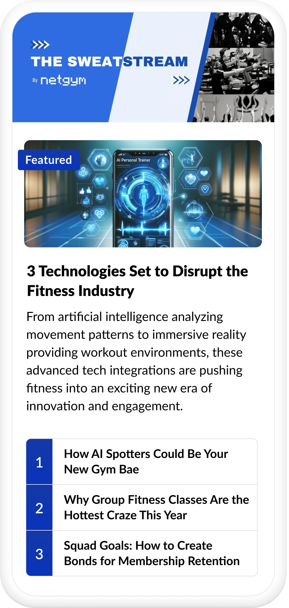 Dive into our weekly newsletter for a quick masterclass in optimizing your group fitness & studio operations. Join the NetGym community of forward-thinking fitness leaders and transform your business into a powerhouse of productivity and profitability!